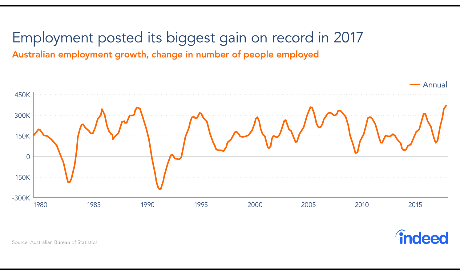 - Employment gains in 2017 were the strongest Australia has experienced since 2005.