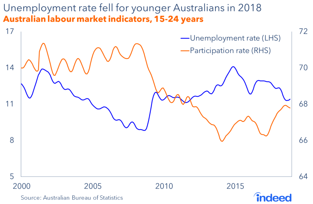- For younger Australians, finding work has become less daunting. The unemployment rate among the 15-24 age group plunged to its lowest level in seven years. However, the struggles of the retail sector raise the question of whether this will continue in 2019