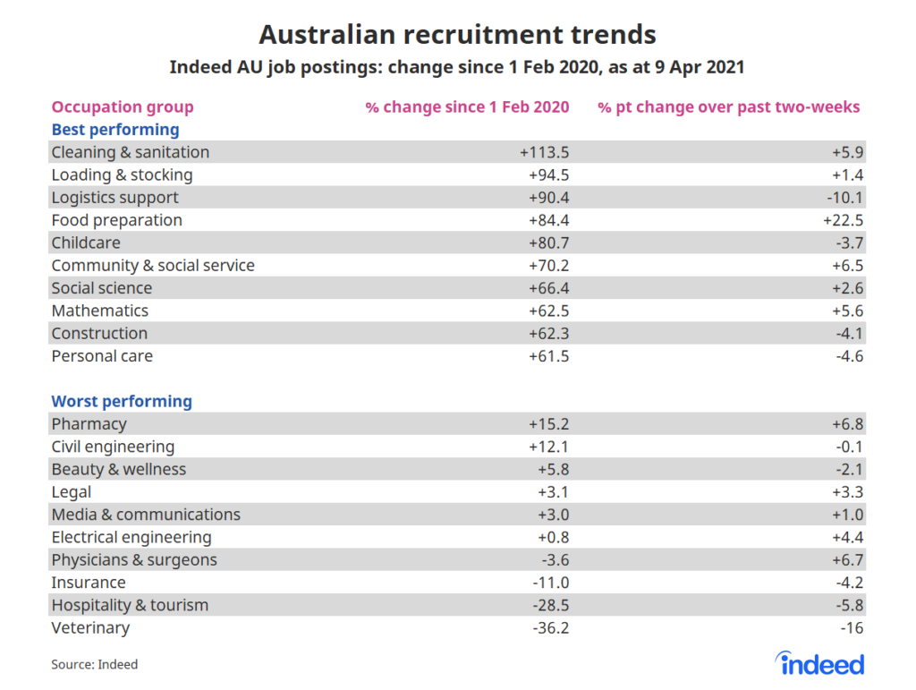 Australia’s hiring recovery has been impressive and, although there are some occupations lagging behind, most are heading in the right direction.