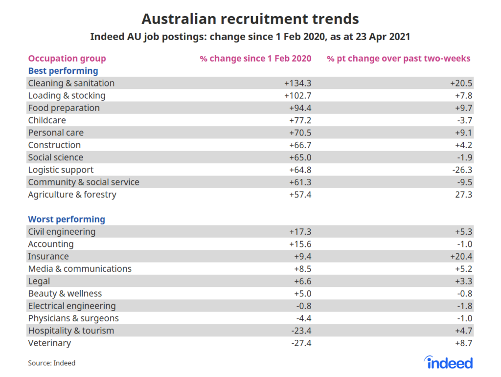 Australia’s hiring recovery has been impressive and, although there are some occupations lagging behind, most are heading in the right direction.