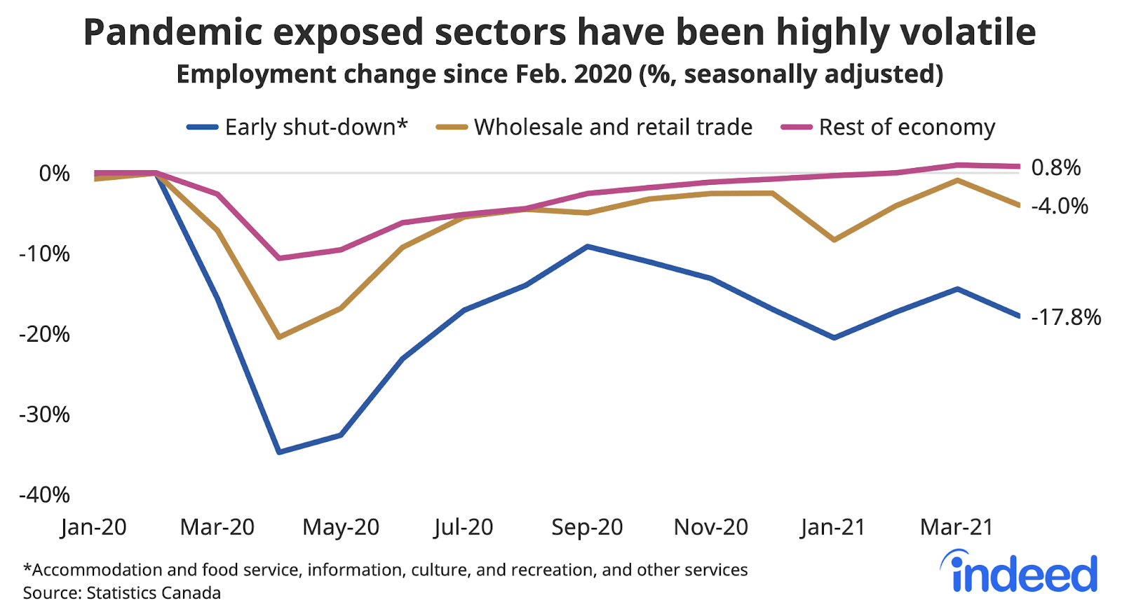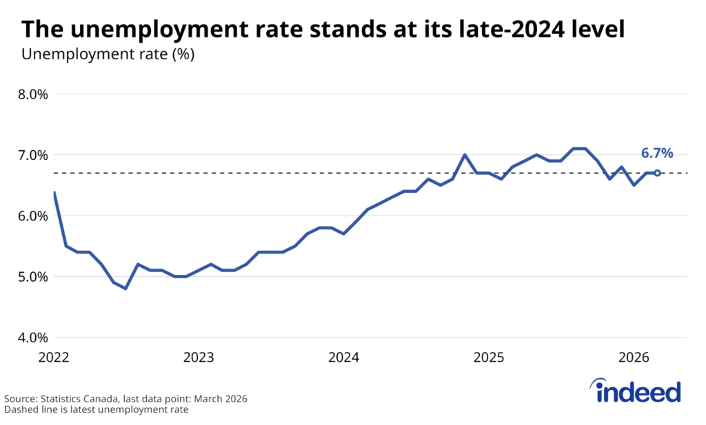At the same time, overall employer hiring appetite has remained solid. Job postings on Indeed Canada have been steady at elevated levels in recent weeks, up 18% from their pre-pandemic level, as of May 21.