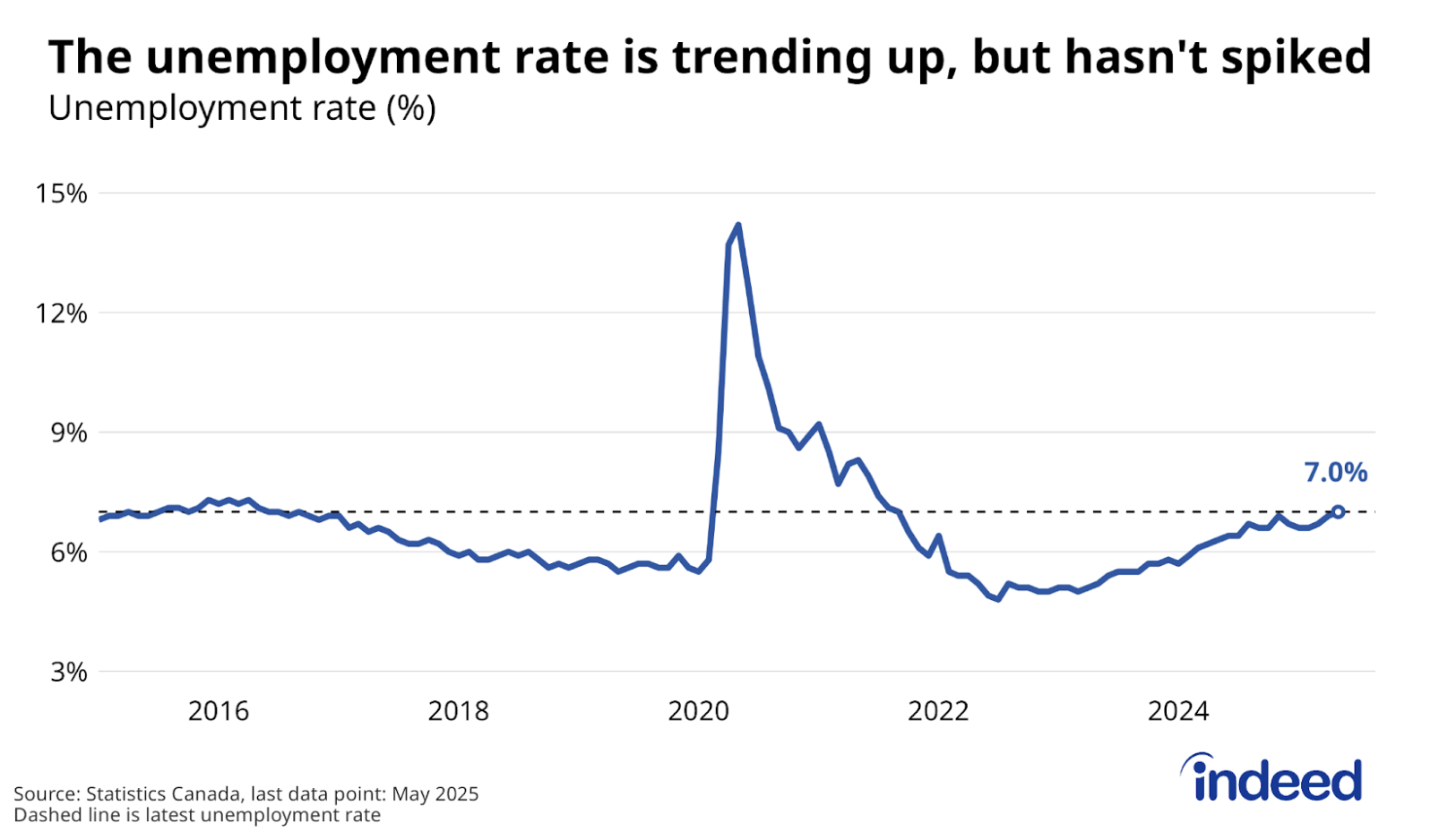 For all the uncertainty from the trade situation, at the national level, many of the downbeat labour market trends continue to resemble subdued trends that’ve built up in recent years. Layoffs remain relatively low, but new hiring is still subdued. So far, the bite from the trade war has been more apparent in specific regions that are highly integrated with US trade. A similar trend is evident in recruiting activity, as Canada-wide job postings on Indeed have held relatively steady since February, but are down more sharply in several trade-exposed regions including Saint John, Sault Ste. Marie, and Windsor. A rebound in these areas will depend on easing trade tensions, while the strength of the headline numbers will depend on if this weakness spreads more broadly.
